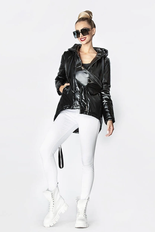 - Zapinana na zamek (dwa wszyte zamki - kurtka może być luźniejsza lub bardziej dopasowana)