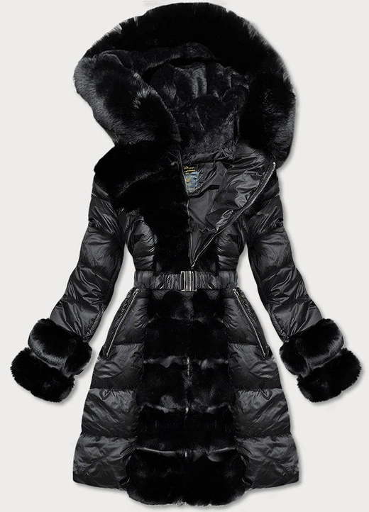 Kurtka zimowa damska z ozdobnym futrem czarna (7729)