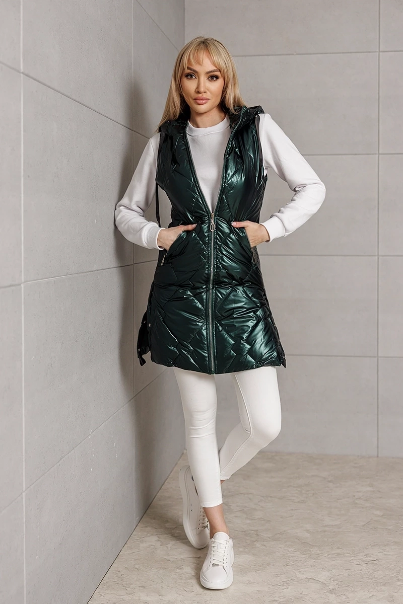 Opinie o Długa kamizelka z kapturem ciemnozielona
