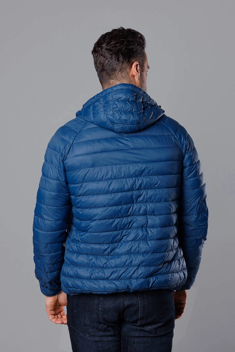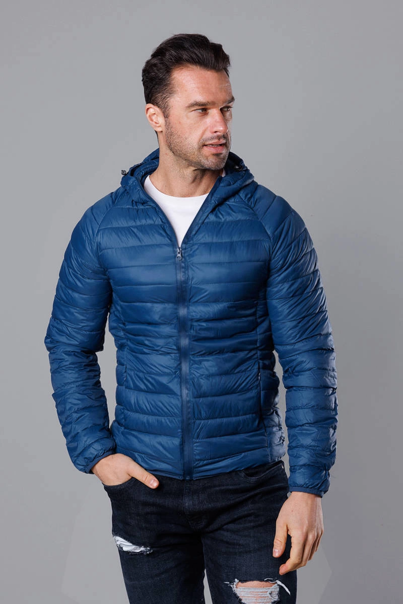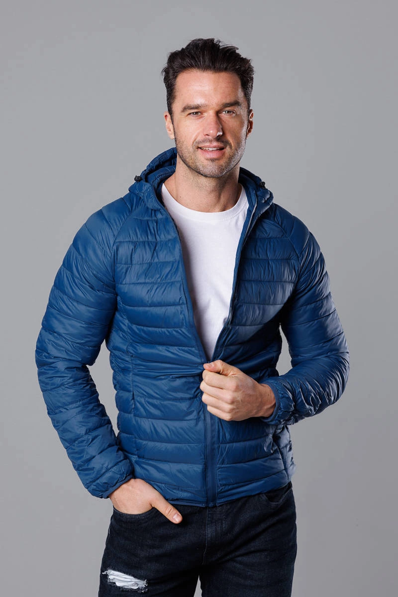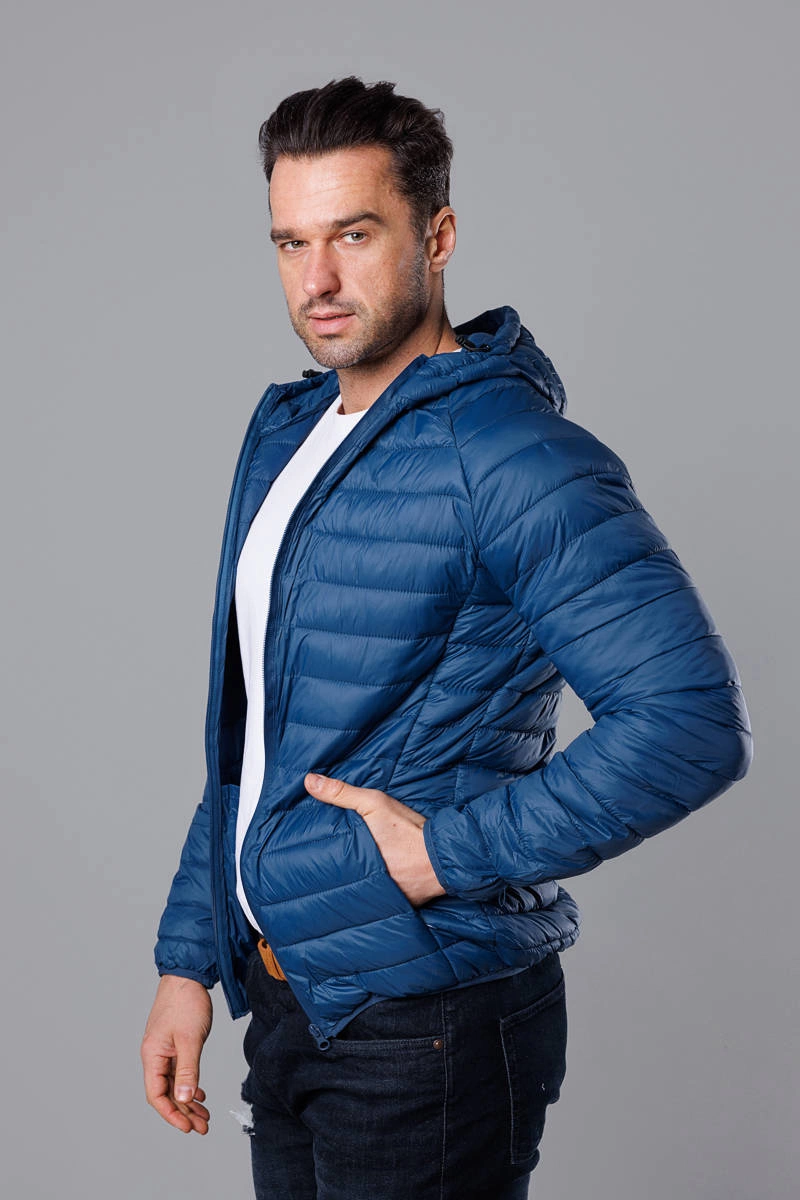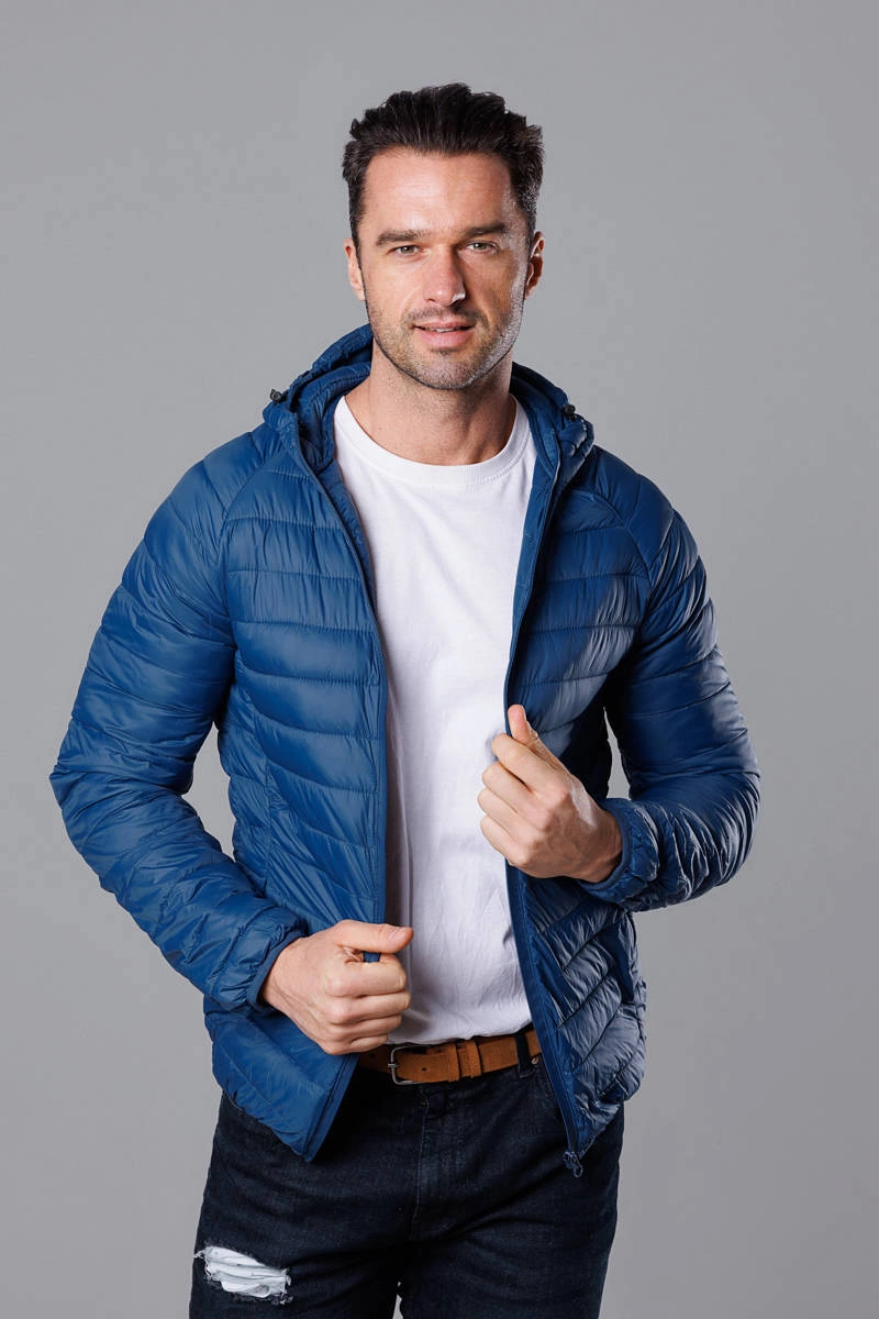 Ciemnoniebieska pikowana kurtka męska z kapturem