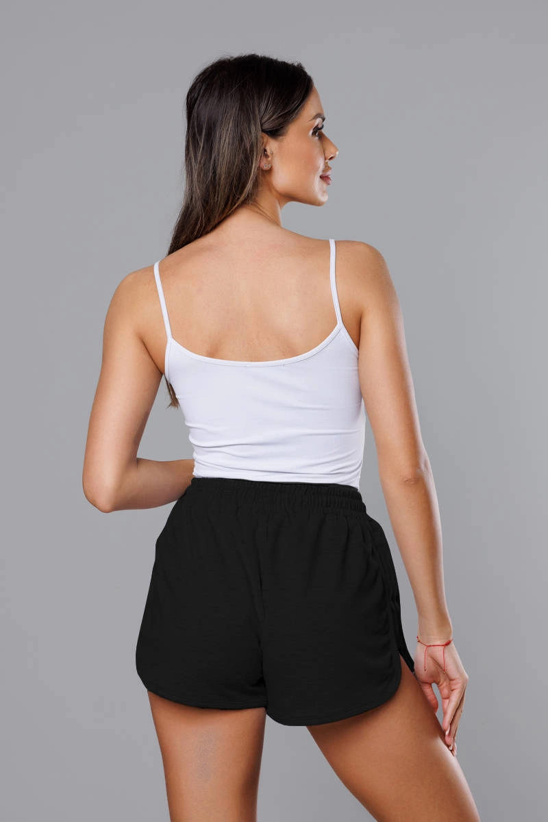 Damskie szorty do biegania, mające średni stan i luźne nogawki. Posiadają dwie kieszenie i wygodną gumkę z trokiem w pasie. Spodenki są wygodne i praktyczne nie tylko podczas treningu, ale także w noszeniu je na co dzień.