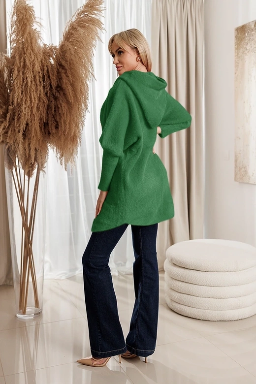 Zielony płaszcz z kapturem typu alpaka
