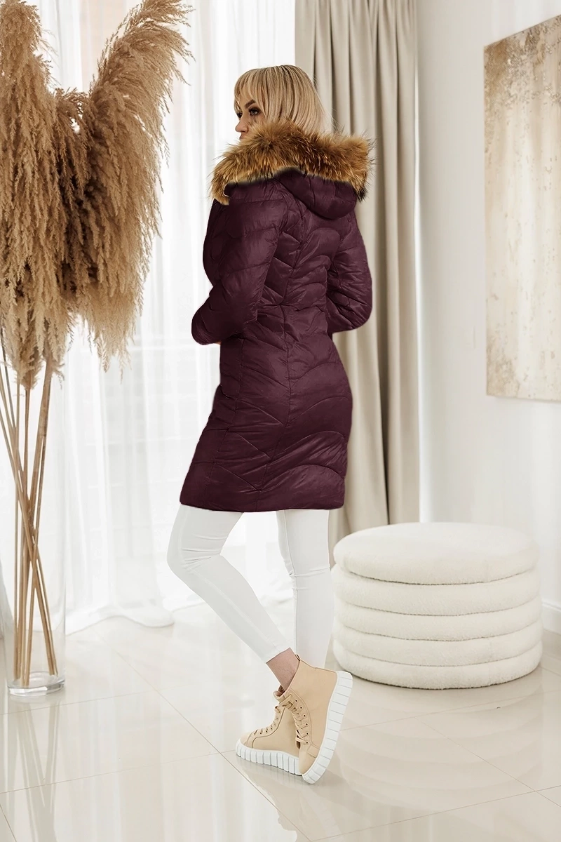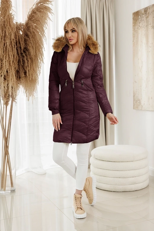Kurtka z kapturem to stylowy i funkcjonalny wybór na chłodne dni. Posiada nieodpinany kaptur z odpinanym futerkiem. Zapinana na dwustronny zamek, zapewnia wygodę noszenia. Taliowany krój podkreśla sylwetkę, a dwie kieszenie oferują miejsce na drobiazgi. Ocieplana puchem syntetycznym, gwarantuje ciepło i komfort. Jej długość sięga przed kolana, zapewniając dodatkową ochronę przed zimnem.