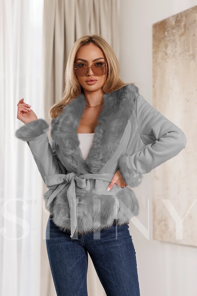 Kurtka z ekologicznego zamszu to elegancki i przyjazny dla środowiska wybór na zimę. Jej futrzany kołnierz dodaje nie tylko uroku, ale także ciepła, choć futerko nie jest odpinane, co nadaje kurtce wyjątkowego charakteru. Lekkie ocieplenie puchem syntetycznym sprawia, że jest odpowiednia na chłodne dni. Dwie kieszenie zapinane na suwak pozwalają na przechowywanie drobiazgów w wygodny sposób, podczas gdy wszyte troki do wiązania stanowią jedyne zapięcie, nadając kurtce minimalistyczny wygląd. Jej długość do pasa sprawia, że jest wygodna w noszeniu i doskonale sprawdzi się w codziennych sytuacjach. To idealna opcja dla tych, którzy poszukują stylowej alternatywy na zimowe miesiące.