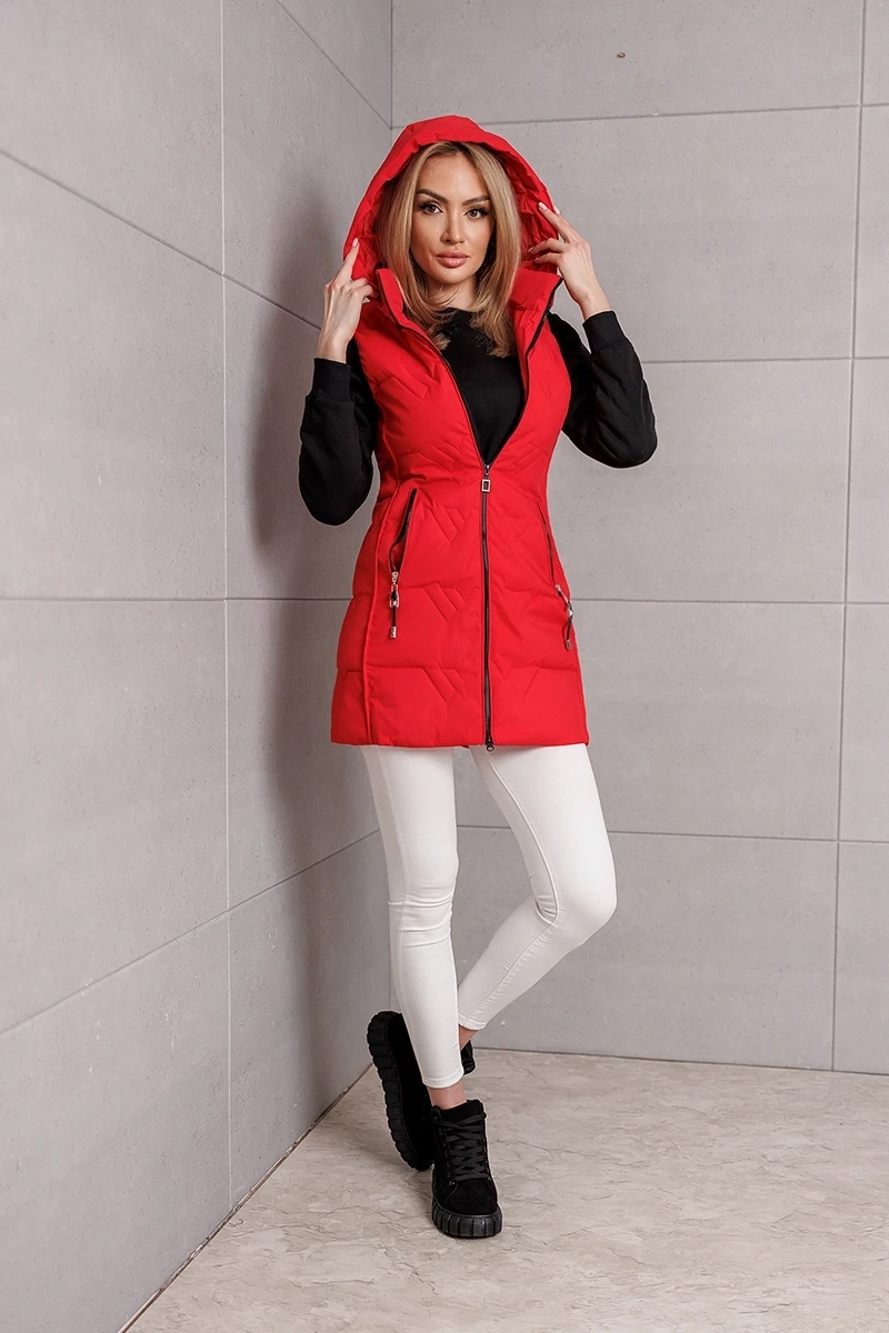Bezrękawnik z kapturem to wygodna i funkcjonalna opcja na chłodniejsze dni. Jego odpinany kaptur pozwala na dostosowanie do zmieniających się warunków pogodowych. Posiada dwukierunkowy zamek. Dwie kieszenie zapewniają miejsce na przechowywanie drobiazgów lub ogrzewanie rąk. Ocieplany puchem syntetycznym. Jego długość do połowy uda sprawia, że jest wygodny i praktyczny do noszenia na co dzień.