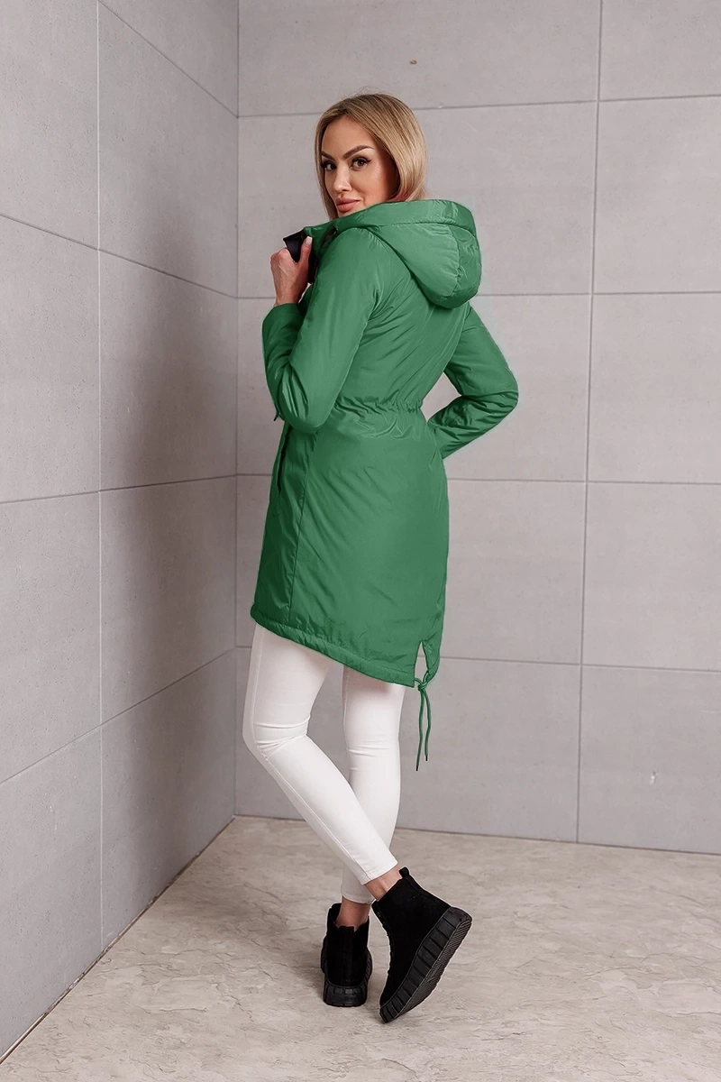 Ta kurtka z nieodpinanym kapturem to idealny wybór dla osób ceniących sobie wygodę i funkcjonalność. Zapinana na dwukierunkowy suwak, zapewnia łatwe i szybkie zapięcie. Dwie kieszenie zapinane na napy pozwalają na przechowywanie drobnych przedmiotów. Prosty krój kurtki sprawia, że pasuje do wielu stylizacji, natomiast trok ściągający w pasie pozwala na dopasowanie jej do sylwetki. Lekko ocieplana puchem syntetycznym, doskonale chroni przed chłodem. Tył kurtki jest nieco dłuższy niż przód, co dodaje jej modnego wyglądu. Długość do połowy uda zapewnia wygodę i swobodę ruchów podczas noszenia.