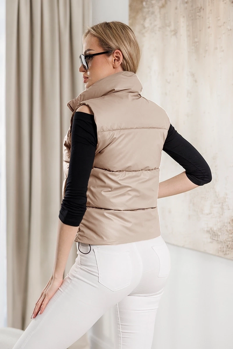 Bezrękawnik ze stójką to doskonała propozycja na niezdecydowane dni pogodowe. Zapinany na zamek, jest łatwy w zakładaniu i zdejmowaniu, co sprawia, że jest praktyczny w użytkowaniu. Posiada dwie niezapinane kieszenie, które są wygodne do przechowywania drobiazgów. Ocieplany puchem syntetycznym, ten bezrękawnik zapewnia ciepło bez dodatkowej masy, co sprawia, że jest idealny na chłodniejsze dni. Jego długość do pasa nadaje się doskonale do codziennego noszenia, zapewniając swobodę ruchów i wygodę użytkowania. Stójka dodaje mu elegancji i dodatkowej ochrony przed wiatrem. To praktyczny i uniwersalny element garderoby, który doskonale komponuje się z różnymi stylizacjami.