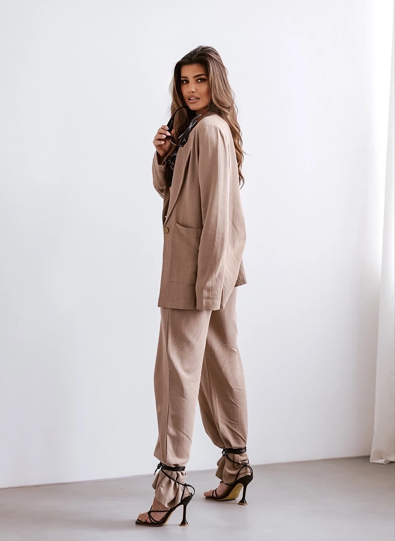 Elegancki komplet cappuccino marynarka + spodnie