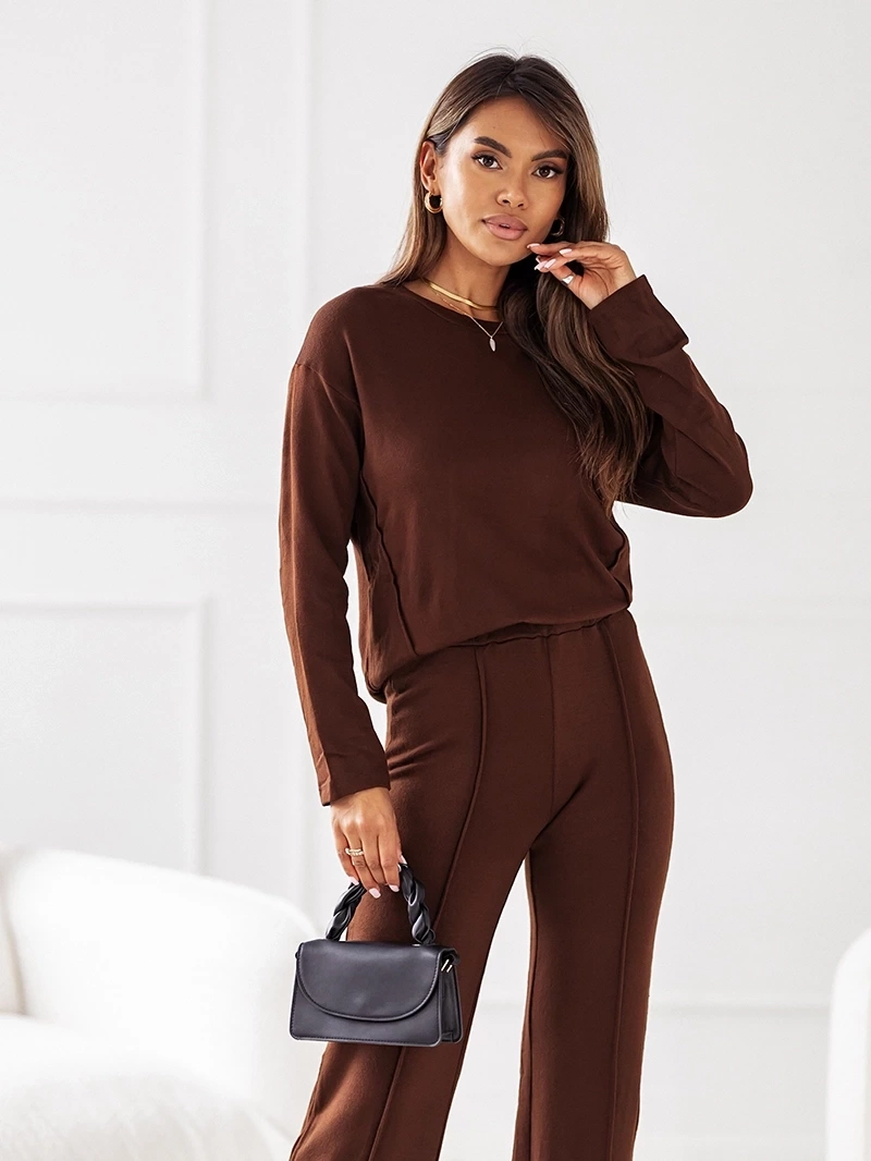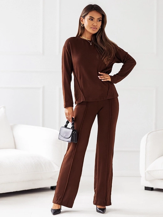 Swetrowy czekoladowy komplet bluzka i spodnie