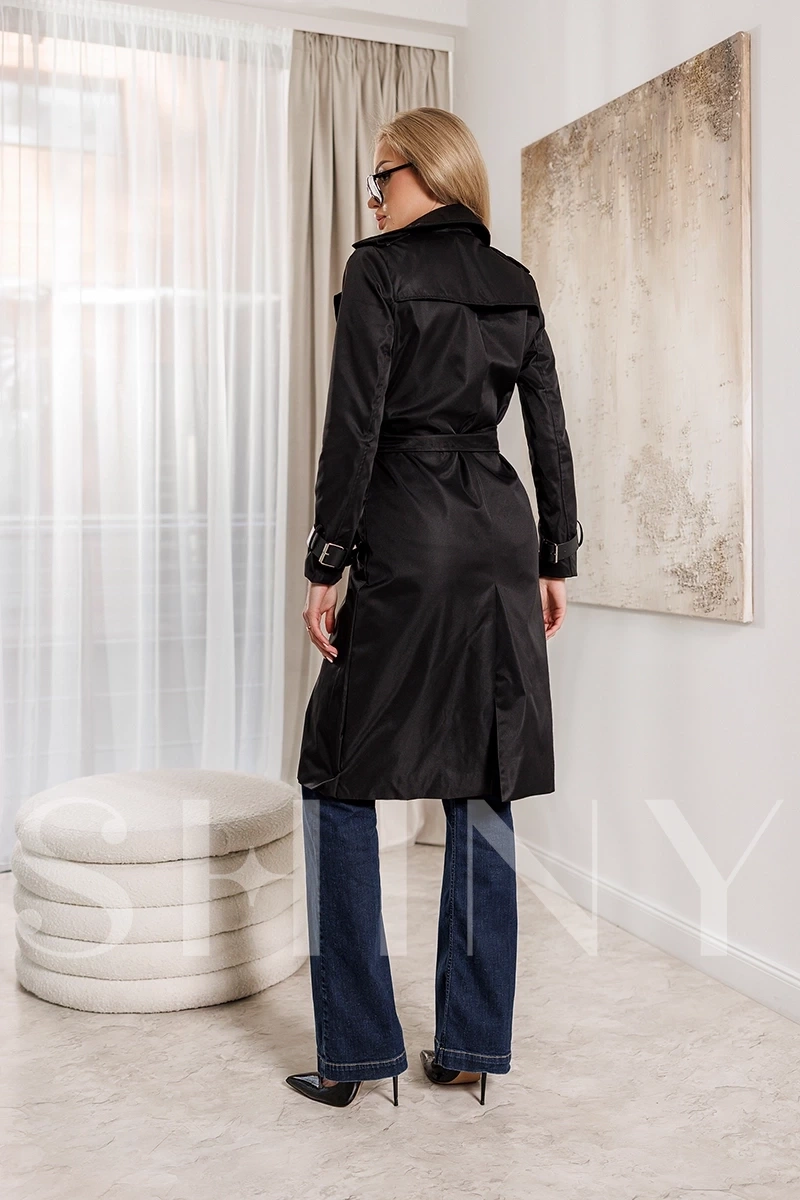 Długi trencz to klasyczny, elegancki płaszcz, który będzie doskonałym dodatkiem do Twojej garderoby. Ten stylowy płaszcz ma kołnierz i klapy, które dodają mu szyku i charakteru. Prosty fason sprawia, że jest uniwersalny i pasuje do wielu różnych stylizacji. Długi rękaw z ozdobnymi paskami dodaje subtelności i wyrafinowania. Dodatkowo, pasek z klamrą podkreśla talię, nadając sylwetce kobiecego kształtu. Długość sięgająca do kolan sprawia, że jest to idealny wybór na różne okazje, zarówno do pracy, jak i na spotkania towarzyskie czy wieczorne wyjścia. Płaszcz na podszewce zapewni komfort noszenia. To nie tylko praktyczny element garderoby, ale także stylowy akcent, który podkreśli Twoją elegancję i pewność siebie.