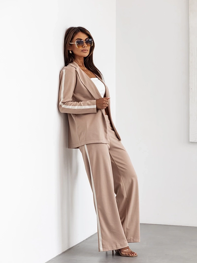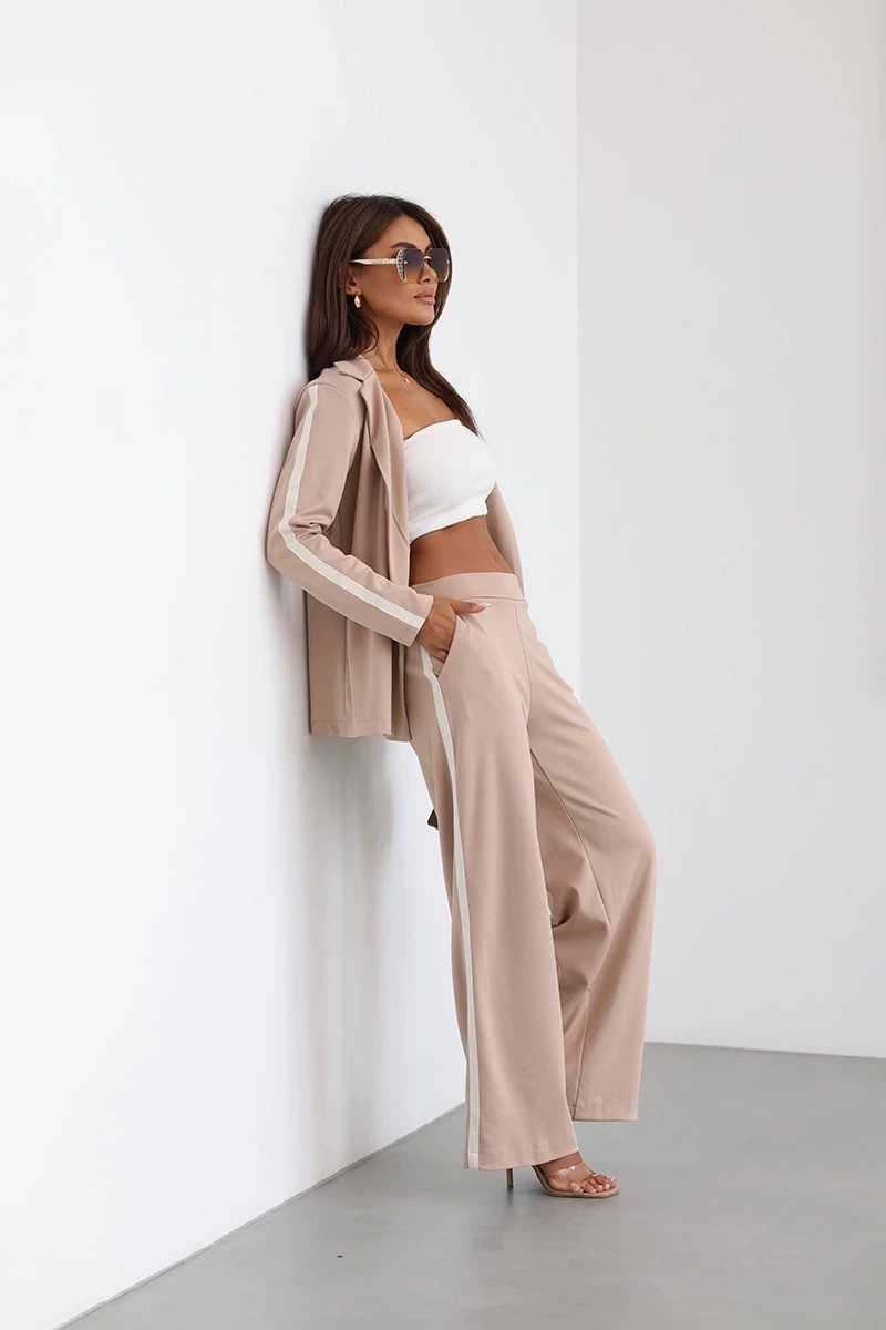 Beżowy komplet damski sportowa marynarka i szerokie spodnie
