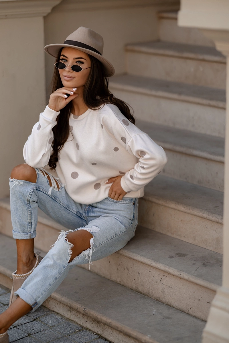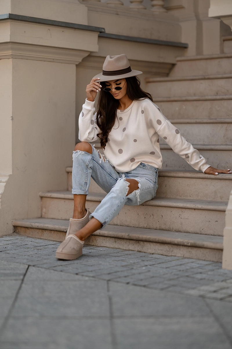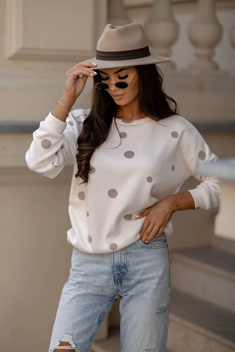 Beżowa damska bluza w kropki