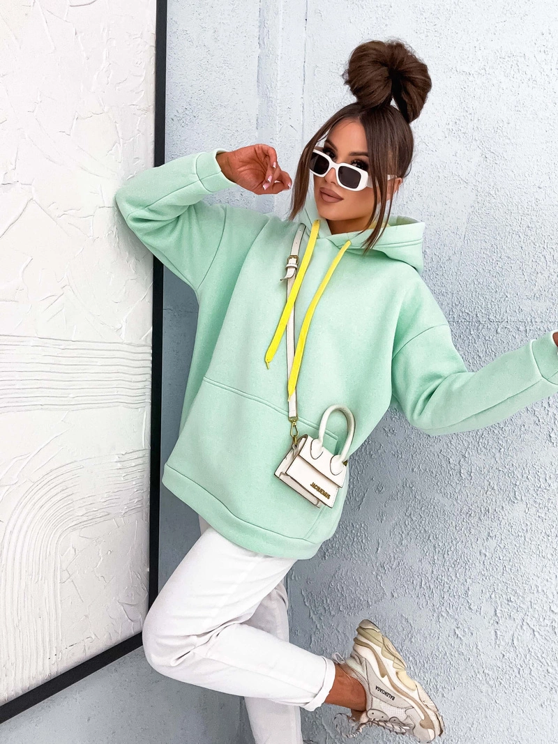 Gruba bluza damska kangurka w stylu oversize to idealny wybór na chłodniejsze dni. Wyposażona w nieodpinany kaptur, długie rękawy zakończone ściągaczami, zapewnia komfort i ciepło. Bluza sięga do bioder, co sprawia, że jest nie tylko wygodna, ale i stylowa.