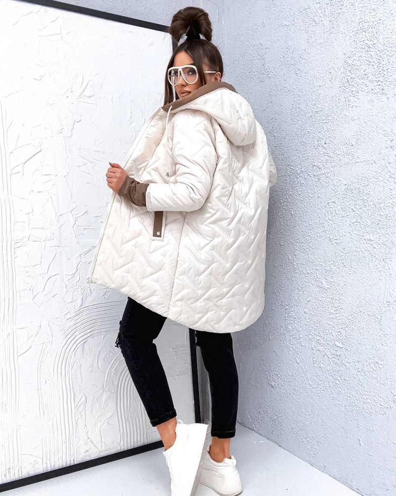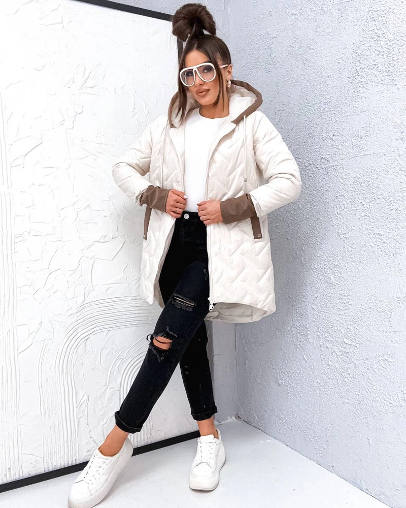 Opinie o Luźna przejściowa kurtka plus size z kapturem ecru