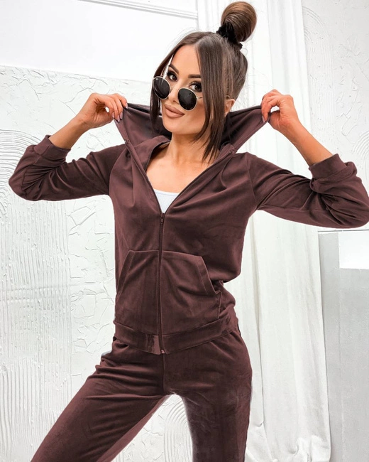 Zestaw bluza + spodnie dresowe welur czekoladowy