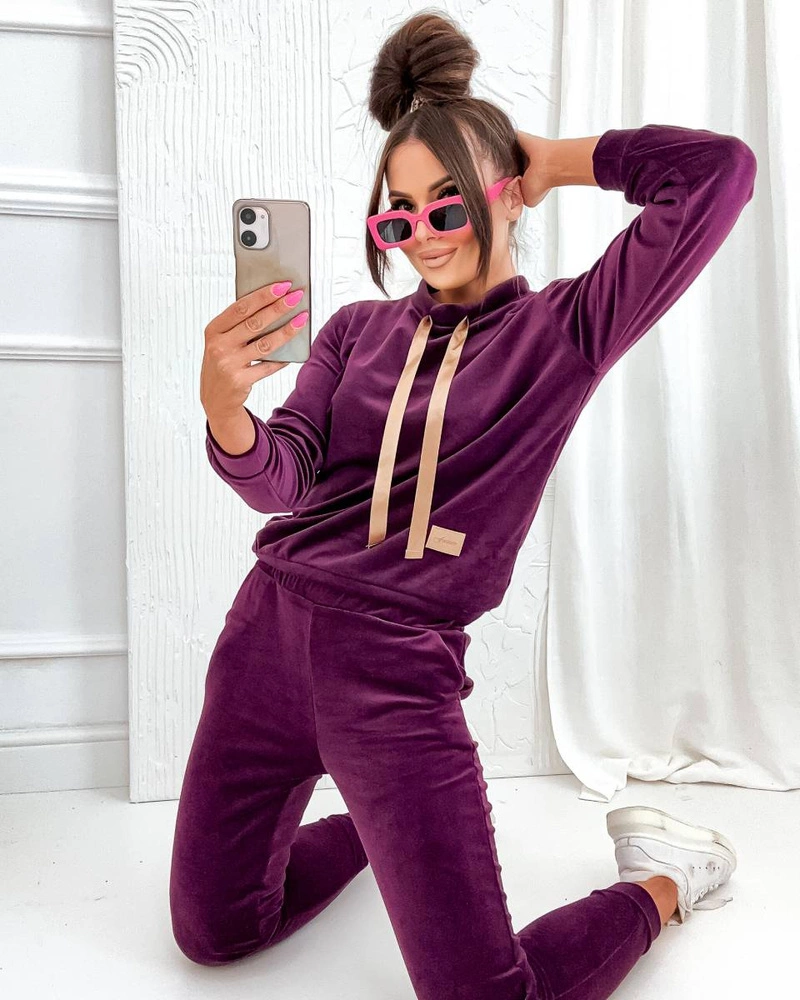 Welurowa bordowa bluza ze spodniami