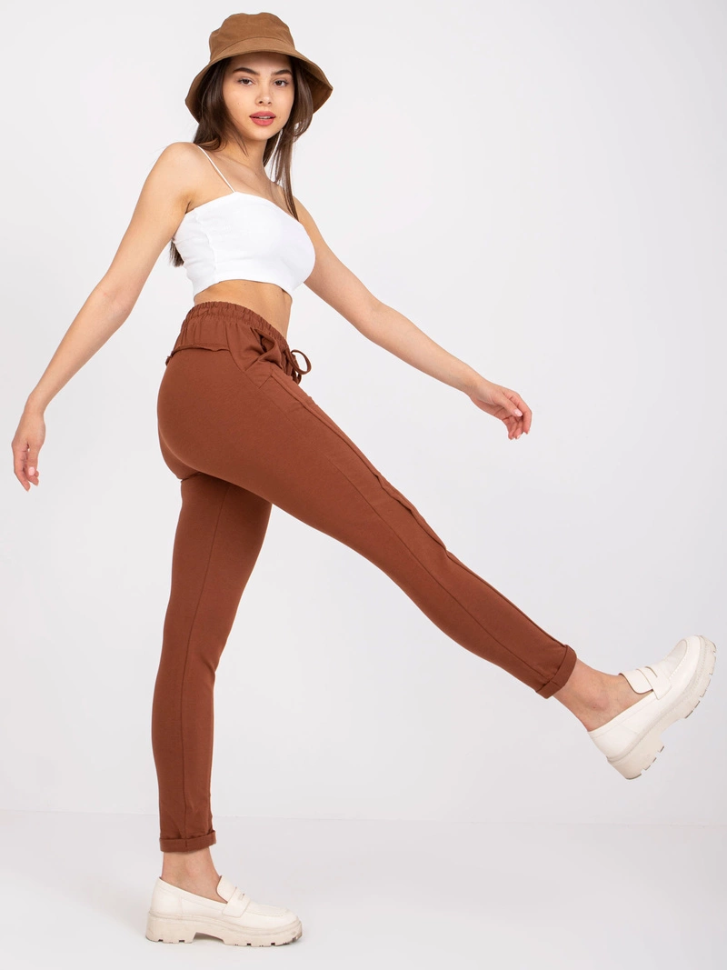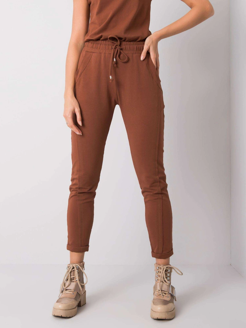 Brązowe bawełniane spodnie z podwijanymi nogawkami