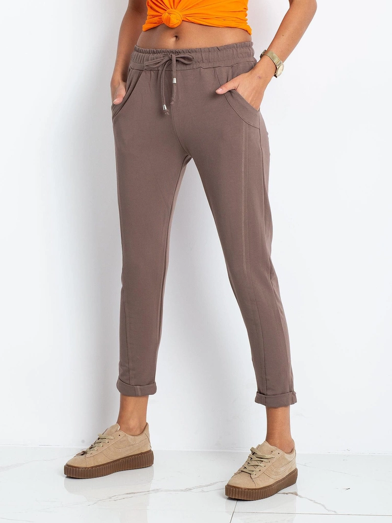 Czekoladowe bawełniane spodnie z podwijanymi nogawkami