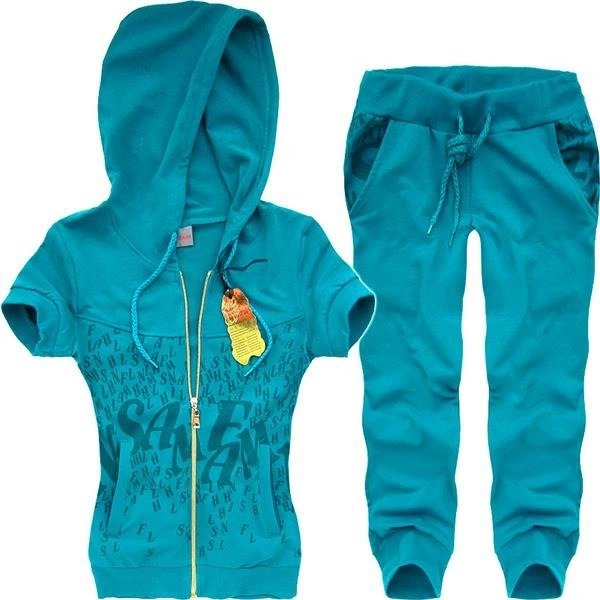 *BLUZA* jest na krótki rękaw, zapinana na zamek oraz posiada kaptur z trokami i 2 kieszenie! *SPODNIE* są długości 3/4, posiadają 4 kieszenie oraz trok i gumę w pasie!