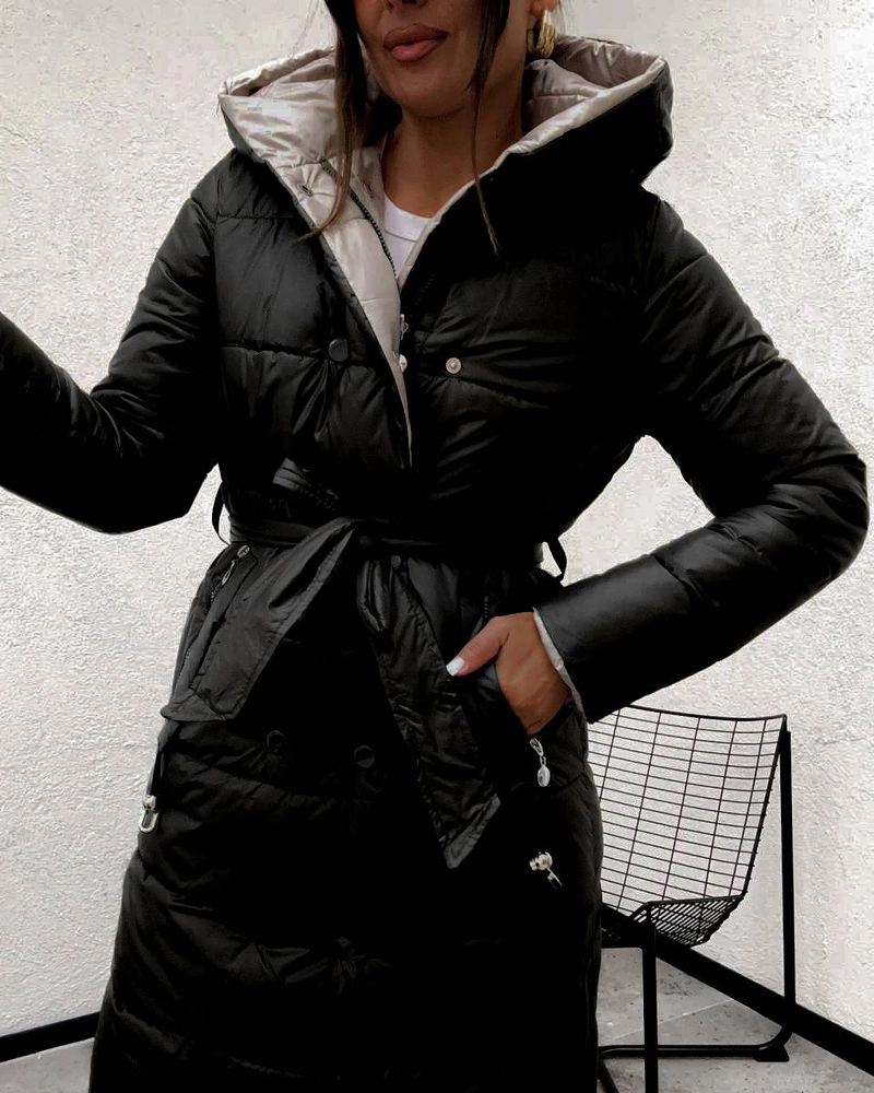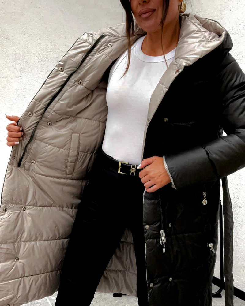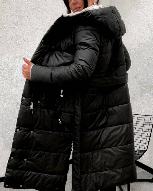 Opinie o Długa dwustronna kurtka zimowa z kapturem czarny-beżowy
