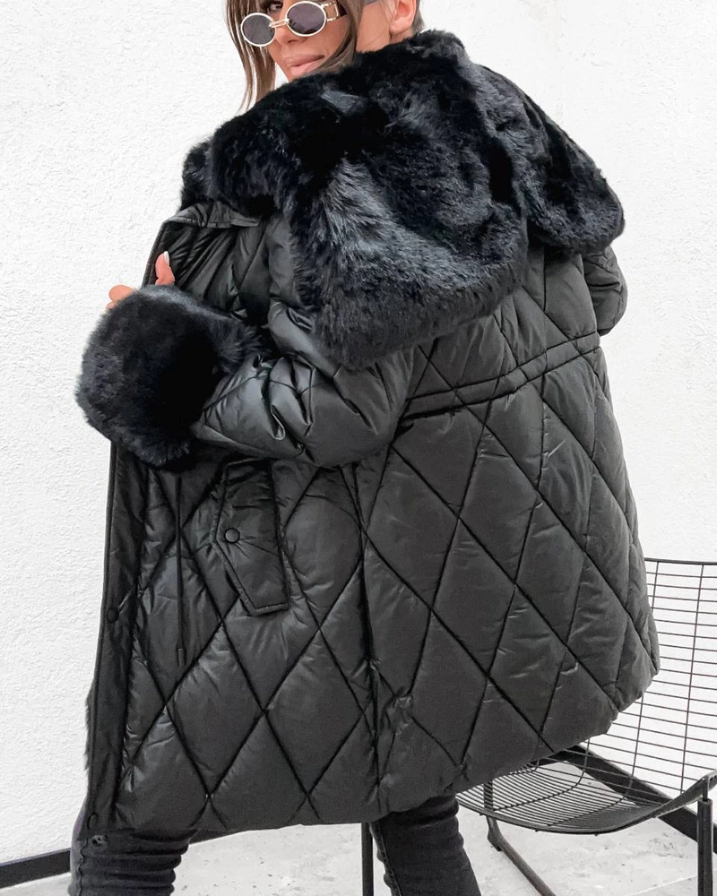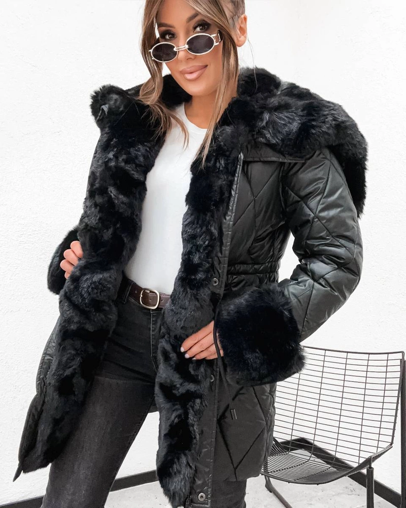 Pikowana kurtka zimowa czarna z futrzanym wykończeniem
