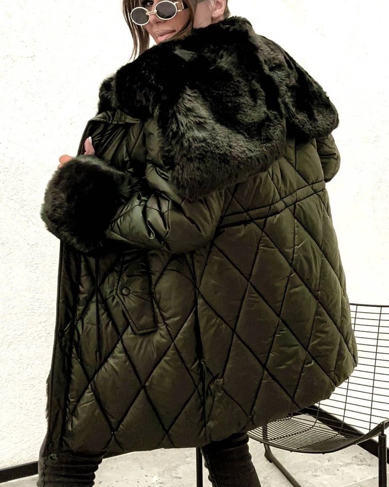 Pikowana kurtka zimowa khaki z futrzanym wykończeniem