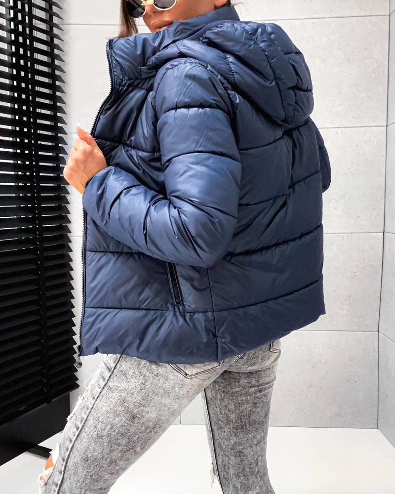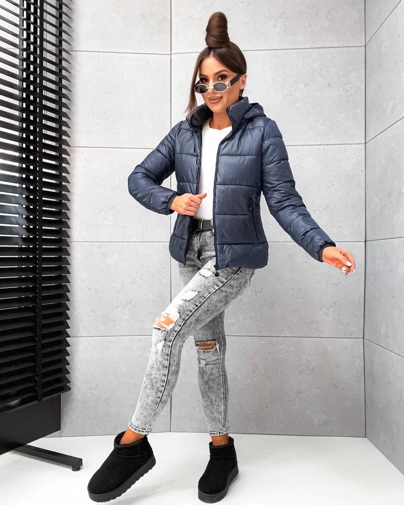 Lekko taliowana kurtka zimowa do bioder, ocieplona puchem syntetycznym. Wyposażona w praktyczną stójkę, odpinany kaptur oraz zamek na całej długości. Rękawy wykończone elastyczną lamówką zapewniają wygodne dopasowanie, a dwie kieszenie dodają funkcjonalności. Idealna na chłodniejsze dni.
