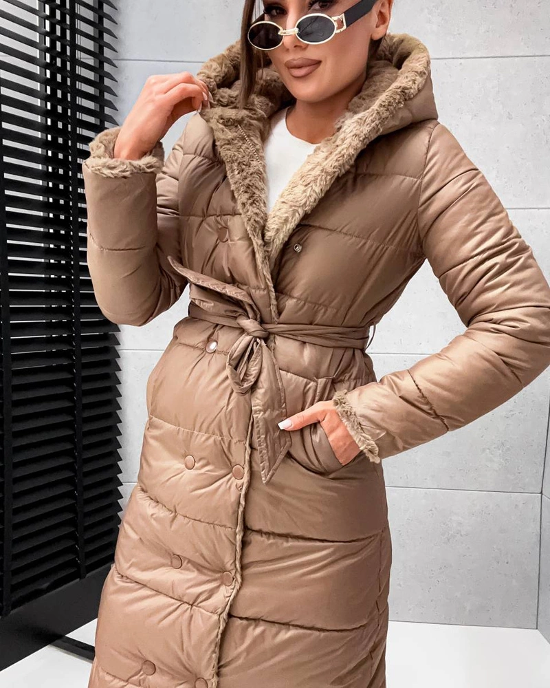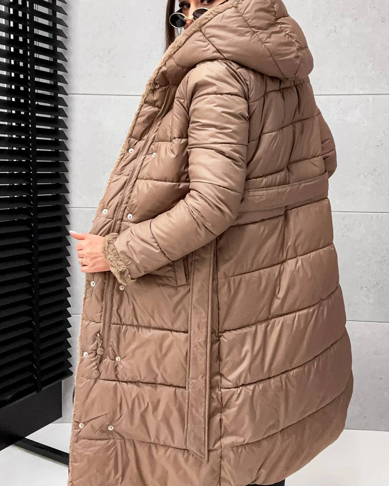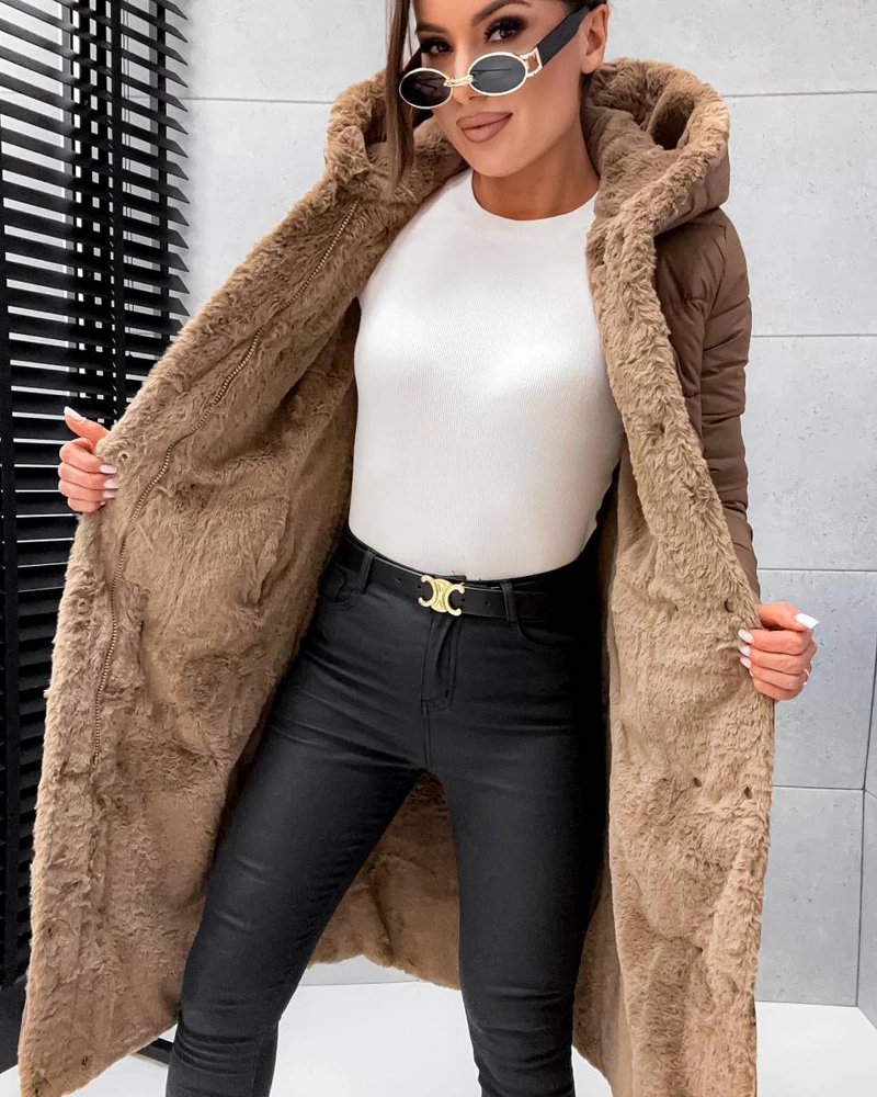 Zimowa kurtka dwustronna – jedna strona pikowana, druga z futerkiem, łączy ciepło z modnym stylem. Odpinany kaptur, ocieplenie syntetycznym puchem, dwukierunkowy zamek oraz dwie niezapinane kieszenie zapewniają wygodę i funkcjonalność. Długość poniżej kolan gwarantuje ochronę przed zimnem.