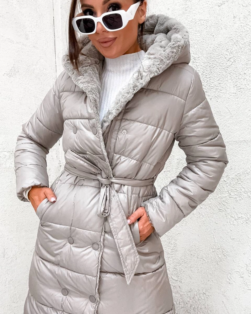 Zimowa kurtka dwustronna – jedna strona pikowana, druga z futerkiem, łączy ciepło z modnym stylem. Odpinany kaptur, ocieplenie syntetycznym puchem, dwukierunkowy zamek oraz dwie niezapinane kieszenie zapewniają wygodę i funkcjonalność. Długość poniżej kolan gwarantuje ochronę przed zimnem.