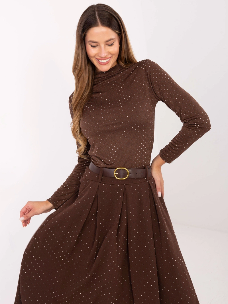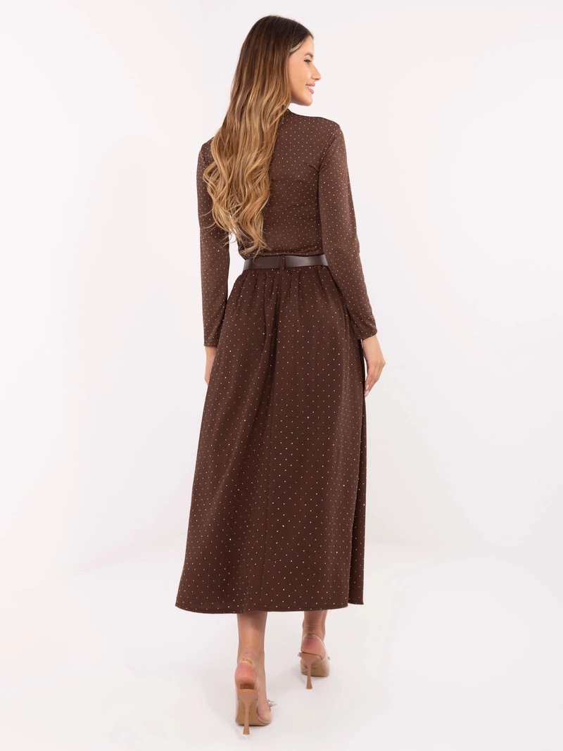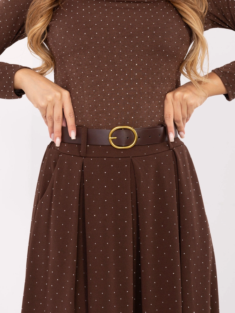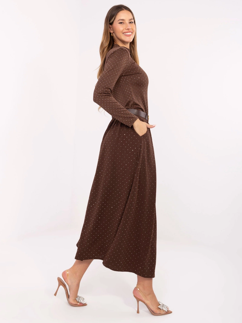 Elegancka spódnica maxi z ozdobnym wykończeniem to lekko rozkloszowany model, który pięknie układa się przy każdym ruchu. Wygodna gumka w pasie i dołączony pasek podkreślają talię, a długość do kostek nadaje całości szykownego, kobiecego charakteru.