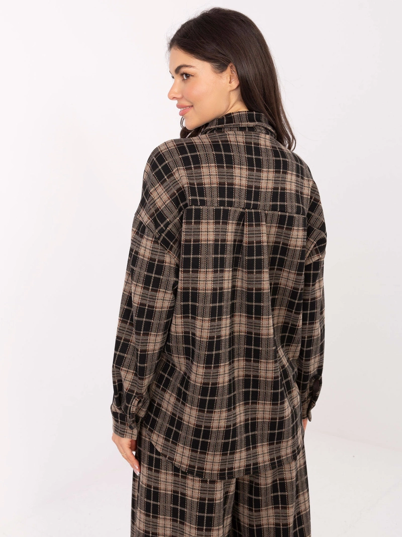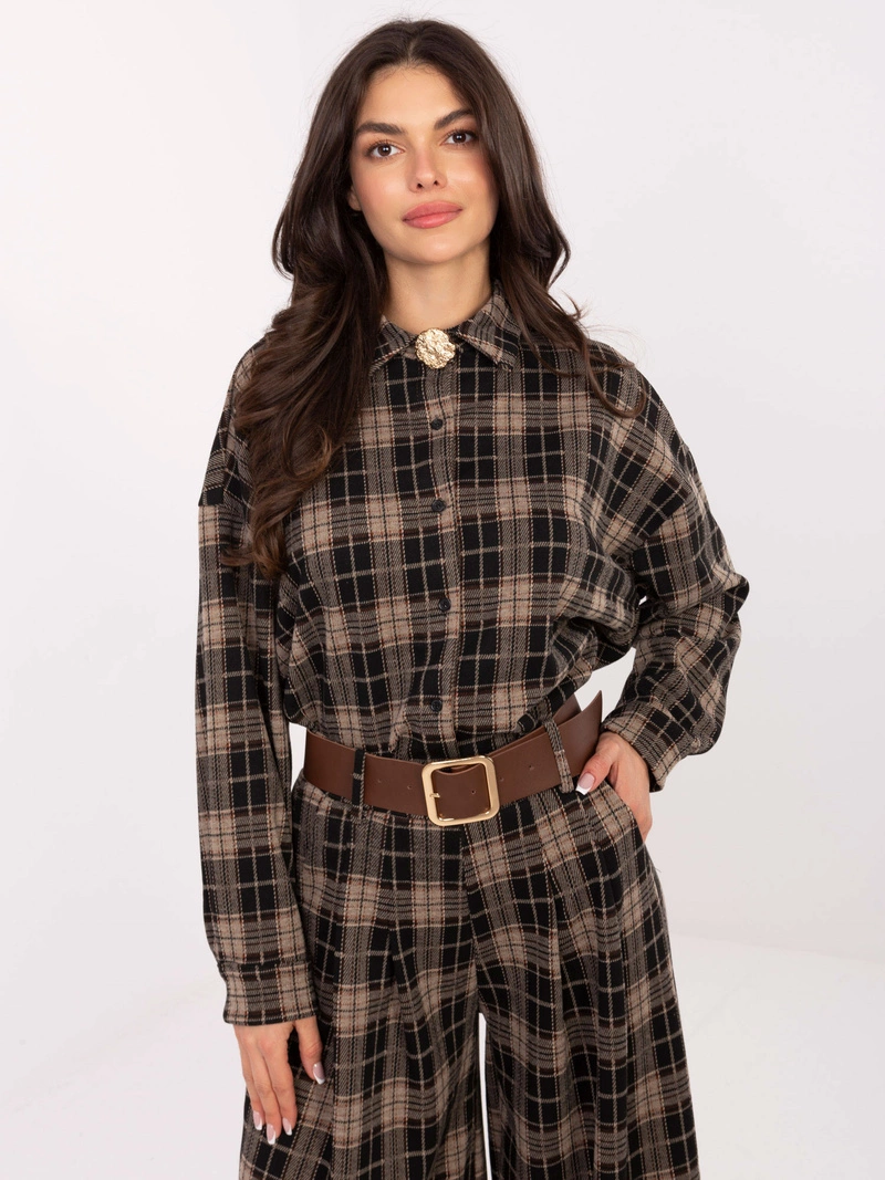 Ciemnobeżowa koszula z broszką