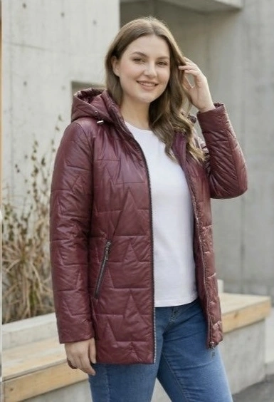 Bordowa pikowana kurtka damska z odpinanym kapturem