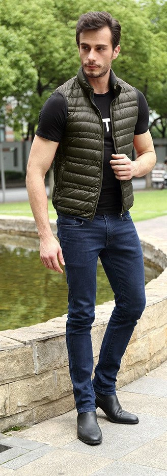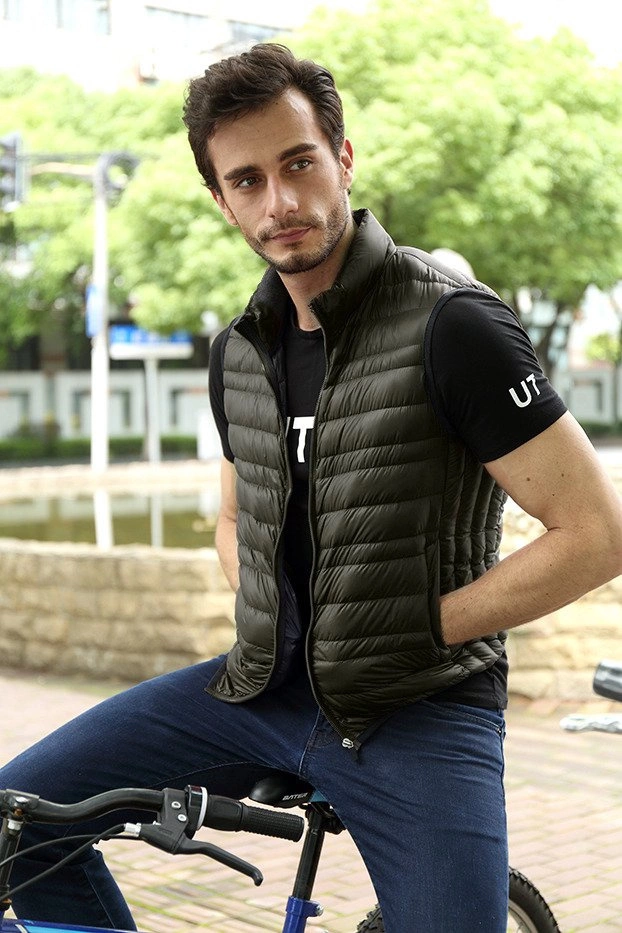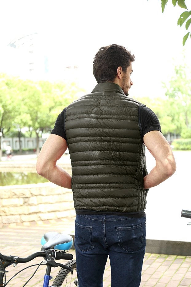 Męska pikowana kamizelka z puchem naturalnym. O klasycznym kroju. Posiada stójkę, która od wewnątrz jest pokryta miłym w dotyku materiałem. Kamizelka zapinana jest na zamek. Ma 2 kieszenie również zapinane na zamek oraz 2 kieszenie od wewnątrz. Ramiona i dół kamizelki są wykończone delikatną lamówką stanowiącą ściągacz. Wykonana z świetnej jakości materiału. Bardzo wygodna i praktyczna. Idealna do tworzenia fantastycznych stylizacji. Kamizelka pięknie się prezentuje.
